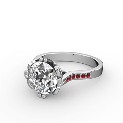 Beyaz zirkon ve garnet 18 ayar beyaz altın yüzük