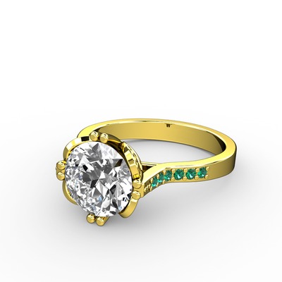 Beyaz zirkon ve yeşil kuvars 925 ayar altın kaplama gümüş yüzük