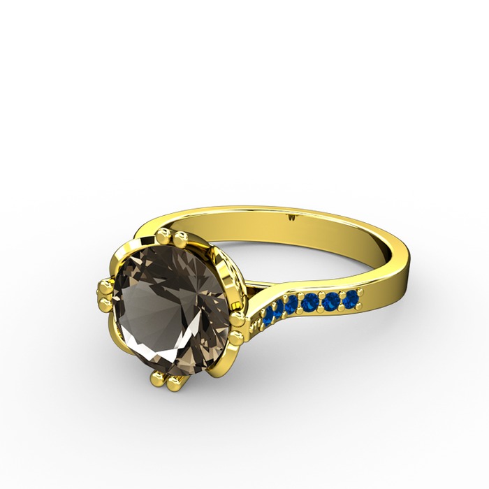 Dumanlı kuvars ve lab safir 8 ayar altın yüzük