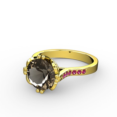Dumanlı kuvars ve rodolit garnet 8 ayar altın yüzük