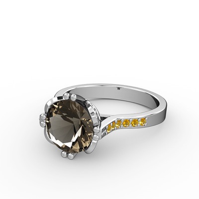 Dumanlı kuvars ve sitrin 8 ayar beyaz altın yüzük