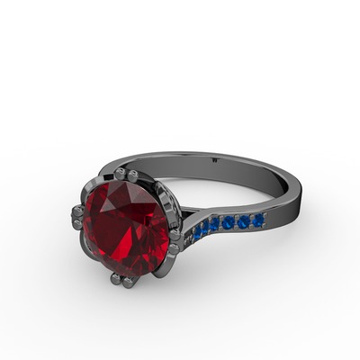 Garnet ve lab safir 925 ayar siyah rodyum kaplama gümüş yüzük