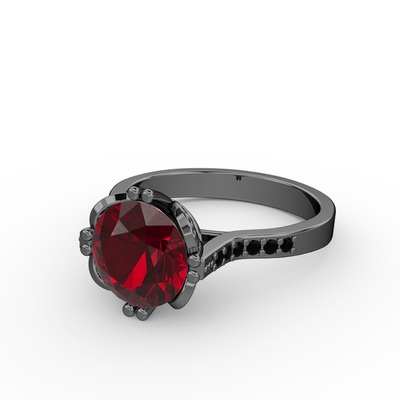Garnet ve siyah zirkon 925 ayar siyah rodyum kaplama gümüş yüzük