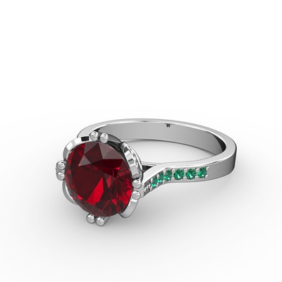 Garnet ve yeşil kuvars 18 ayar beyaz altın yüzük