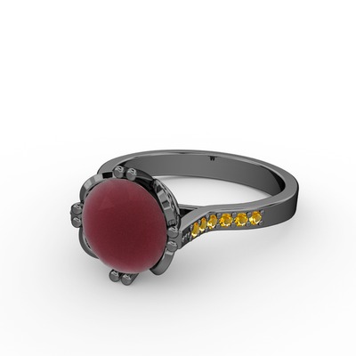 Kök yakut ve sitrin 925 ayar siyah rodyum kaplama gümüş yüzük