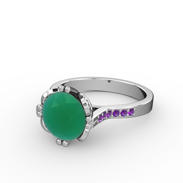 Kök zümrüt ve ametist 8 ayar beyaz altın yüzük