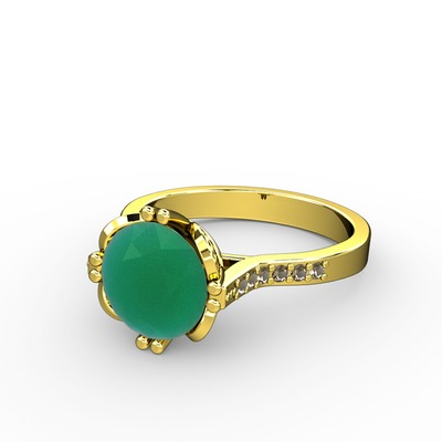 Kök zümrüt ve dumanlı kuvars 14 ayar altın yüzük