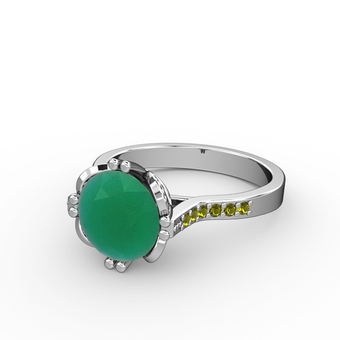 Kök zümrüt ve peridot 8 ayar beyaz altın yüzük