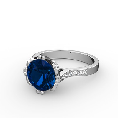 Lab safir ve beyaz zirkon 18 ayar beyaz altın yüzük