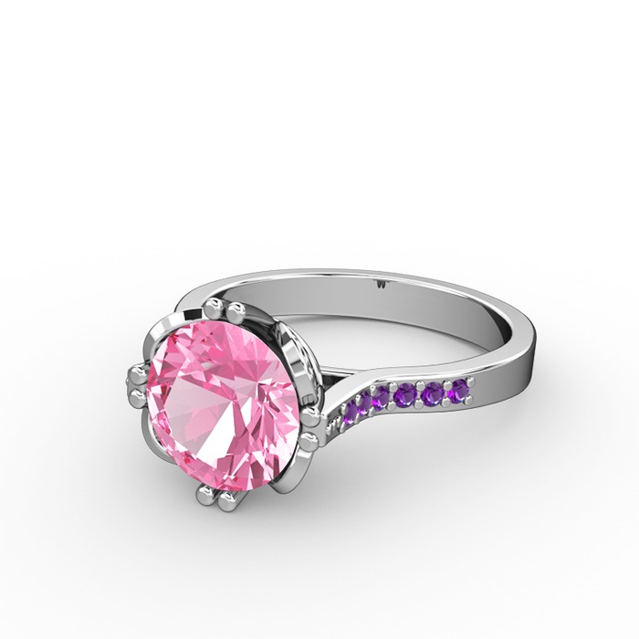 Pembe kuvars ve ametist 18 ayar beyaz altın yüzük