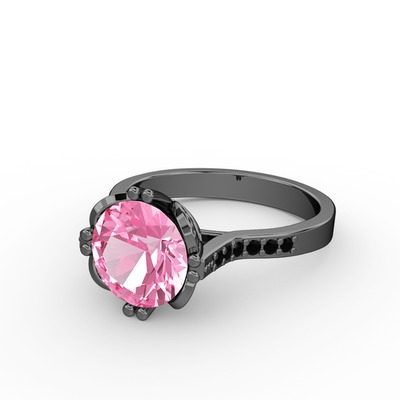 Pembe kuvars ve siyah zirkon 925 ayar siyah rodyum kaplama gümüş yüzük