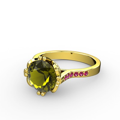 Peridot ve rodolit garnet 925 ayar altın kaplama gümüş yüzük