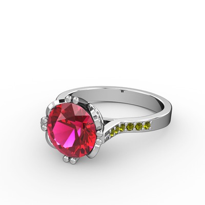 Rodolit garnet ve peridot 8 ayar beyaz altın yüzük