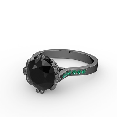 Siyah zirkon ve yeşil kuvars 925 ayar siyah rodyum kaplama gümüş yüzük