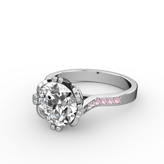 Swarovski ve pembe kuvars 18 ayar beyaz altın yüzük