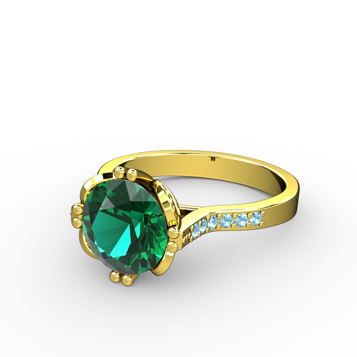 Yeşil kuvars ve akuamarin 8 ayar altın yüzük