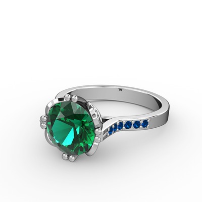 Yeşil kuvars ve lab safir 18 ayar beyaz altın yüzük