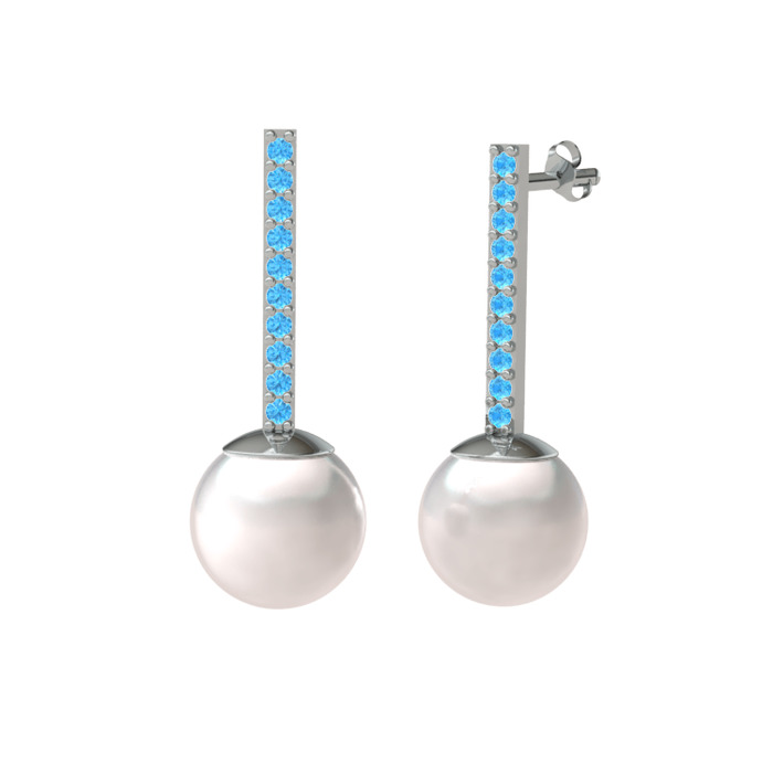 Inci ve akuamarin 14 ayar beyaz altın küpe