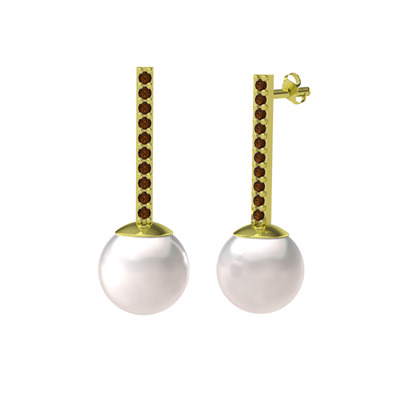 Inci ve dumanlı kuvars 18 ayar altın küpe