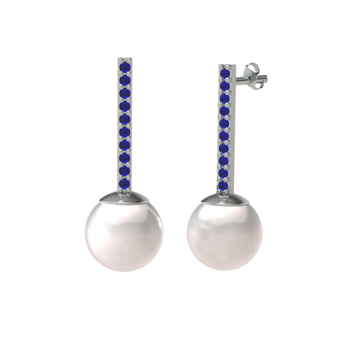 Inci ve lab safir 18 ayar beyaz altın küpe