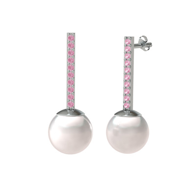 Inci ve pembe kuvars 18 ayar beyaz altın küpe
