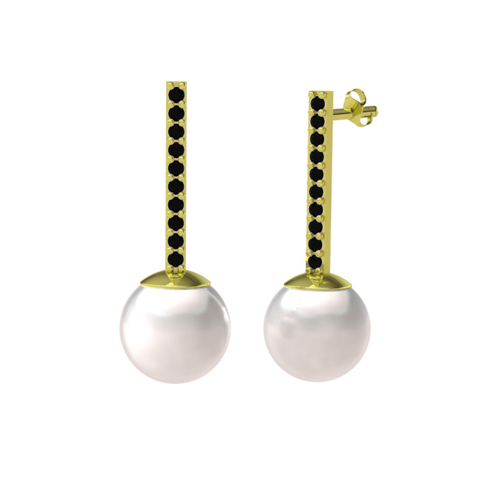 Inci ve siyah zirkon 14 ayar altın küpe