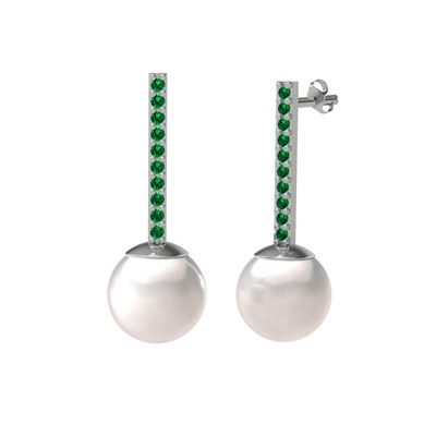 Inci ve yeşil kuvars 8 ayar beyaz altın küpe