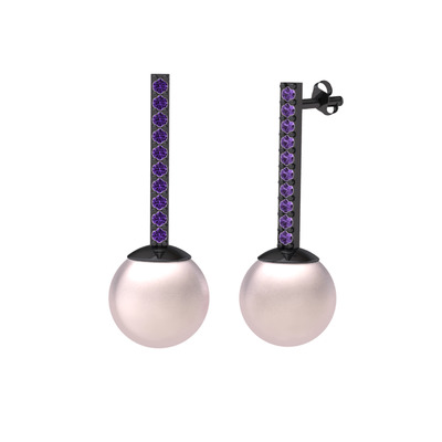 Pembe inci ve ametist 925 ayar siyah rodyum kaplama gümüş küpe