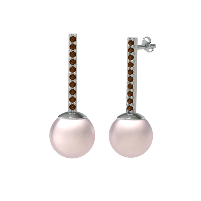 Pembe inci ve dumanlı kuvars 18 ayar beyaz altın küpe