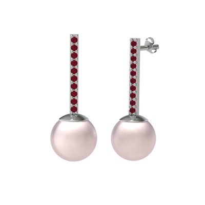 Pembe inci ve kök yakut 8 ayar beyaz altın küpe