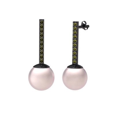 Pembe inci ve peridot 925 ayar siyah rodyum kaplama gümüş küpe