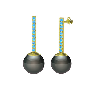 Siyah inci ve akuamarin 14 ayar altın küpe