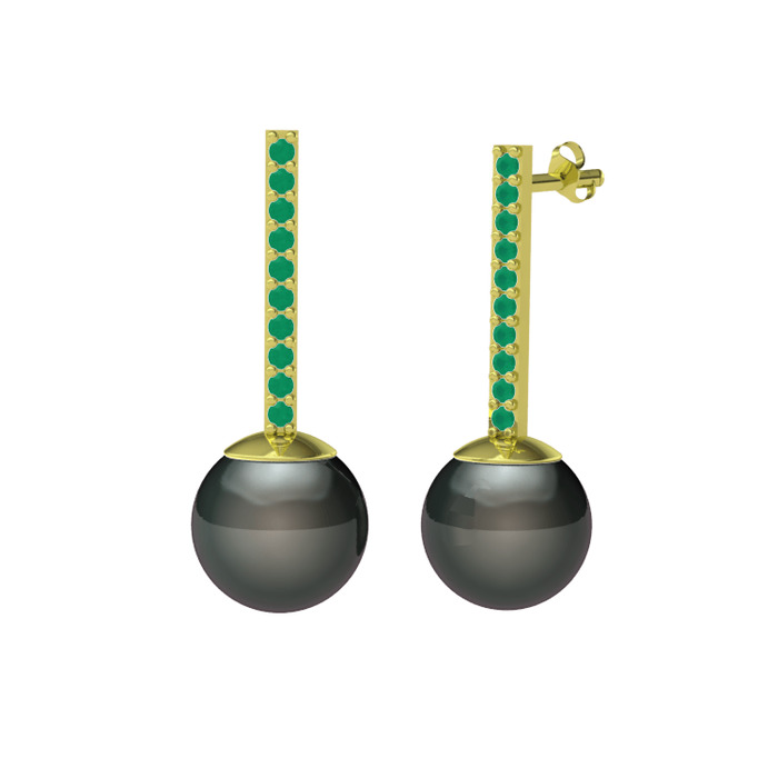 Siyah inci ve kök zümrüt 18 ayar altın küpe