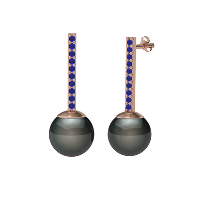 Siyah inci ve lab safir 14 ayar rose altın küpe