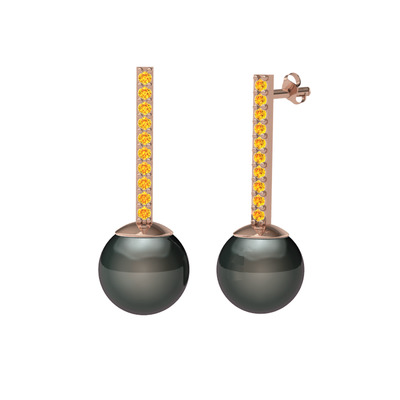 Siyah inci ve sitrin 18 ayar rose altın küpe