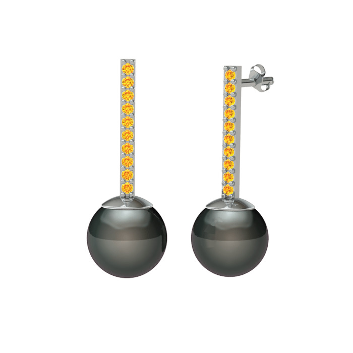 Siyah inci ve sitrin 925 ayar gümüş küpe