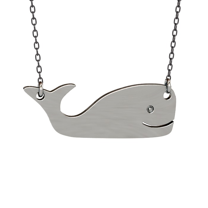 Sevimli Balina Kolye - 8 ayar beyaz altın kolye (40 cm gümüş rolo zincir)