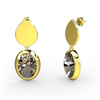 Dumanlı kuvars 18 ayar altın küpe