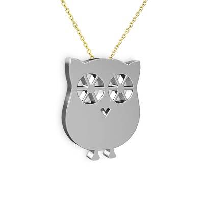 Shelley Baykuş Kolye - 8 ayar beyaz altın kolye (40 cm gümüş rolo zincir)