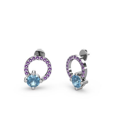 Akuamarin ve ametist 925 ayar gümüş küpe