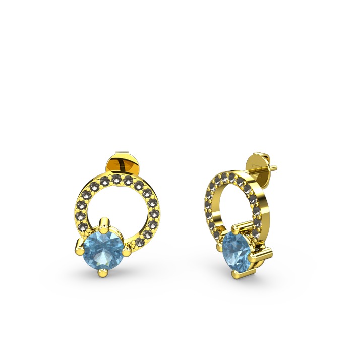 Akuamarin ve dumanlı kuvars 925 ayar altın kaplama gümüş küpe