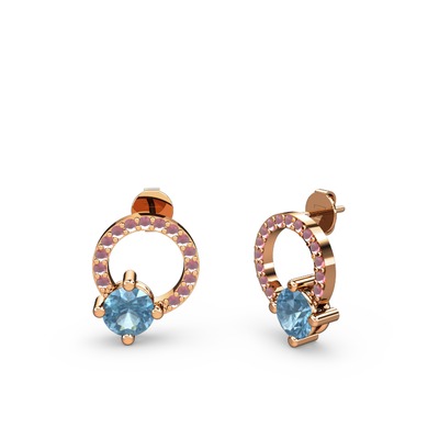 Akuamarin ve kök yakut 14 ayar rose altın küpe