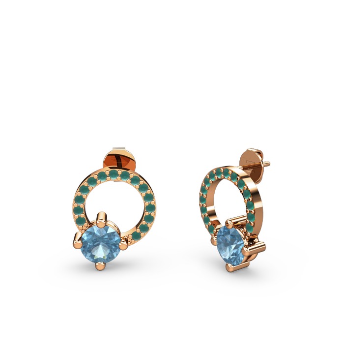 Akuamarin ve kök zümrüt 18 ayar rose altın küpe