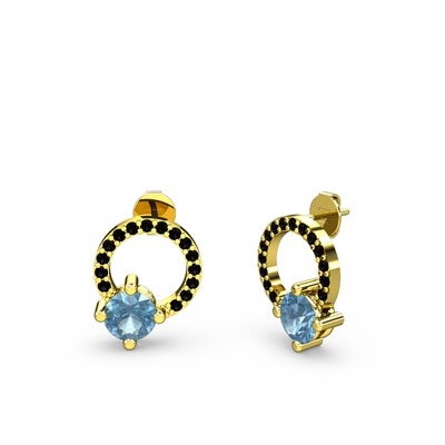 Akuamarin ve siyah zirkon 14 ayar altın küpe