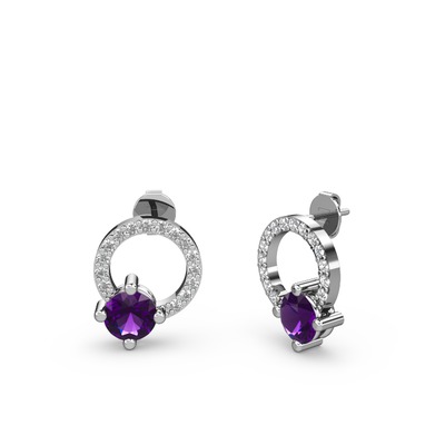 Ametist ve beyaz zirkon 18 ayar beyaz altın küpe