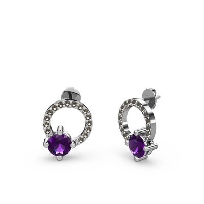 Ametist ve dumanlı kuvars 14 ayar beyaz altın küpe