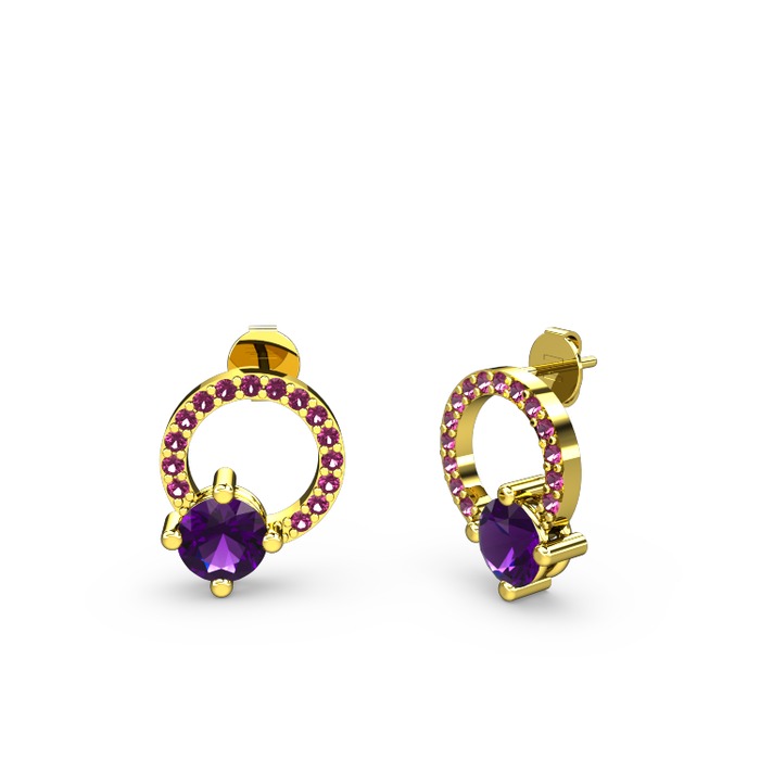 Ametist ve rodolit garnet 8 ayar altın küpe