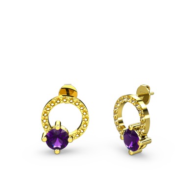 Ametist ve sitrin 925 ayar altın kaplama gümüş küpe