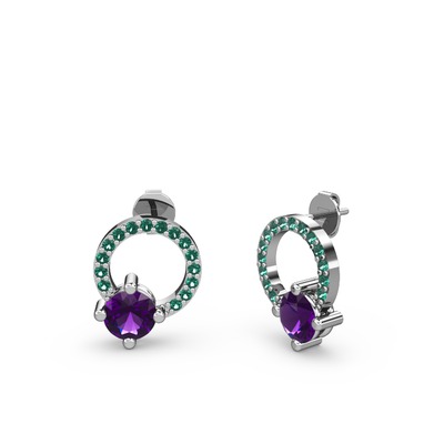Ametist ve yeşil kuvars 8 ayar beyaz altın küpe
