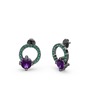 Ametist ve yeşil kuvars 925 ayar siyah rodyum kaplama gümüş küpe